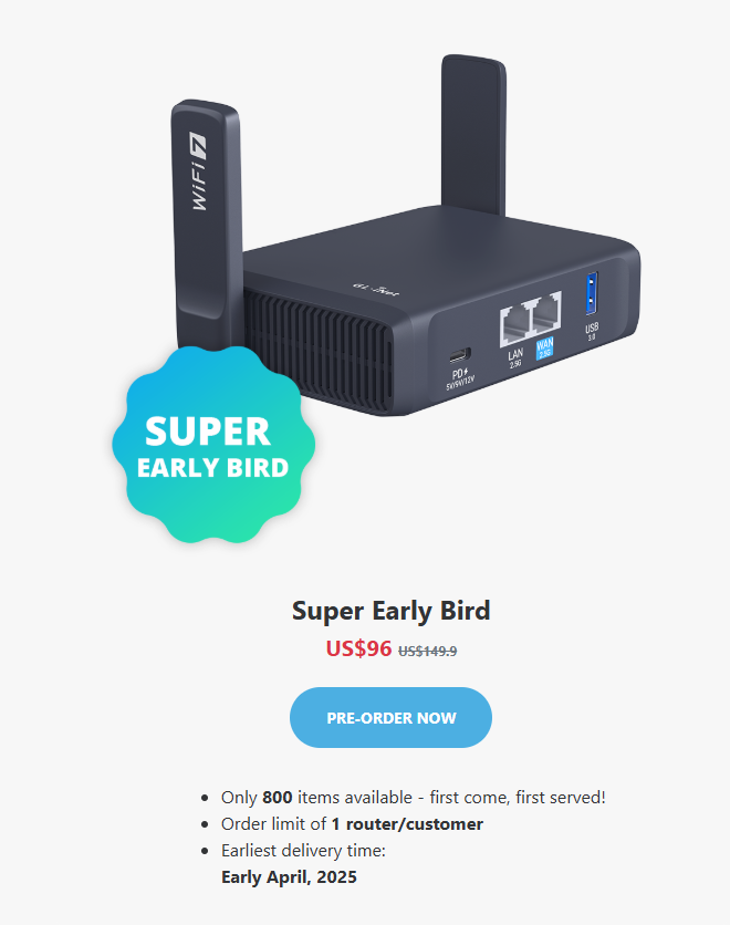 The GLiNet pre-order for the GL-BE3600 Slate 7 for $96 USD