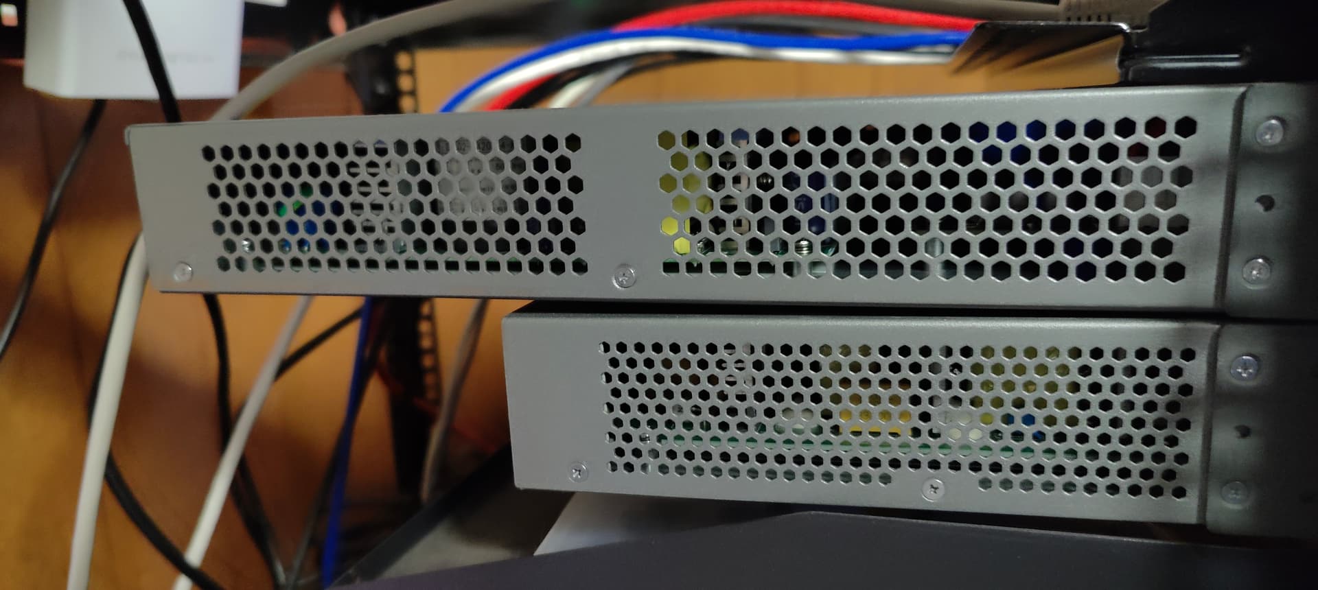 Here is a side shot, 7822p on top and 7802p below it. Posting in case someone doesn’t have much depth in their rack. I use this open frame rack in my office.