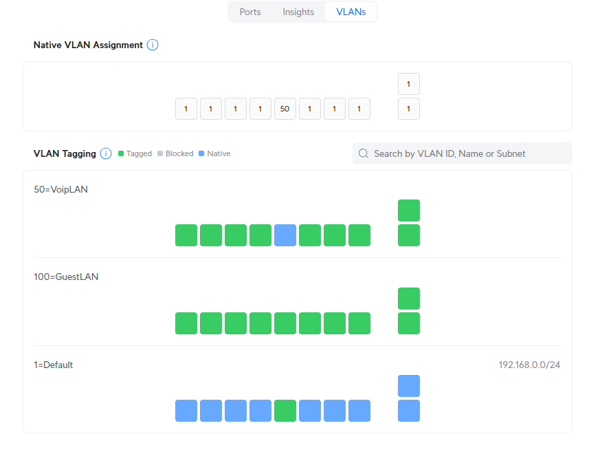 There are three switches all unifi between the phone and the router with the settings default Native VLAN/Network and Allow All for the tagged VLAN management.