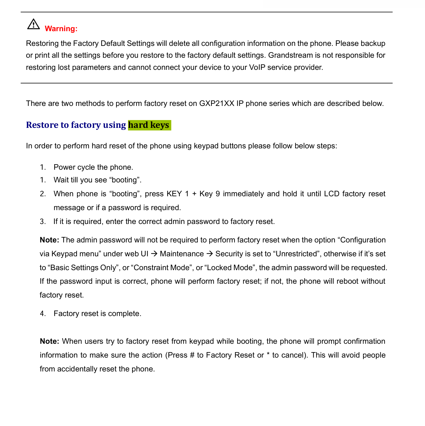 I bought 5 used GXP2135’s from an eBay seller a few months back, three of them were perfect and immediately accepted a config from the UCM. But two of the three, seem to be locked down with constraint mode and non-standard admin creds. The UCM can detect them, but will not successfully push a config to the devices.